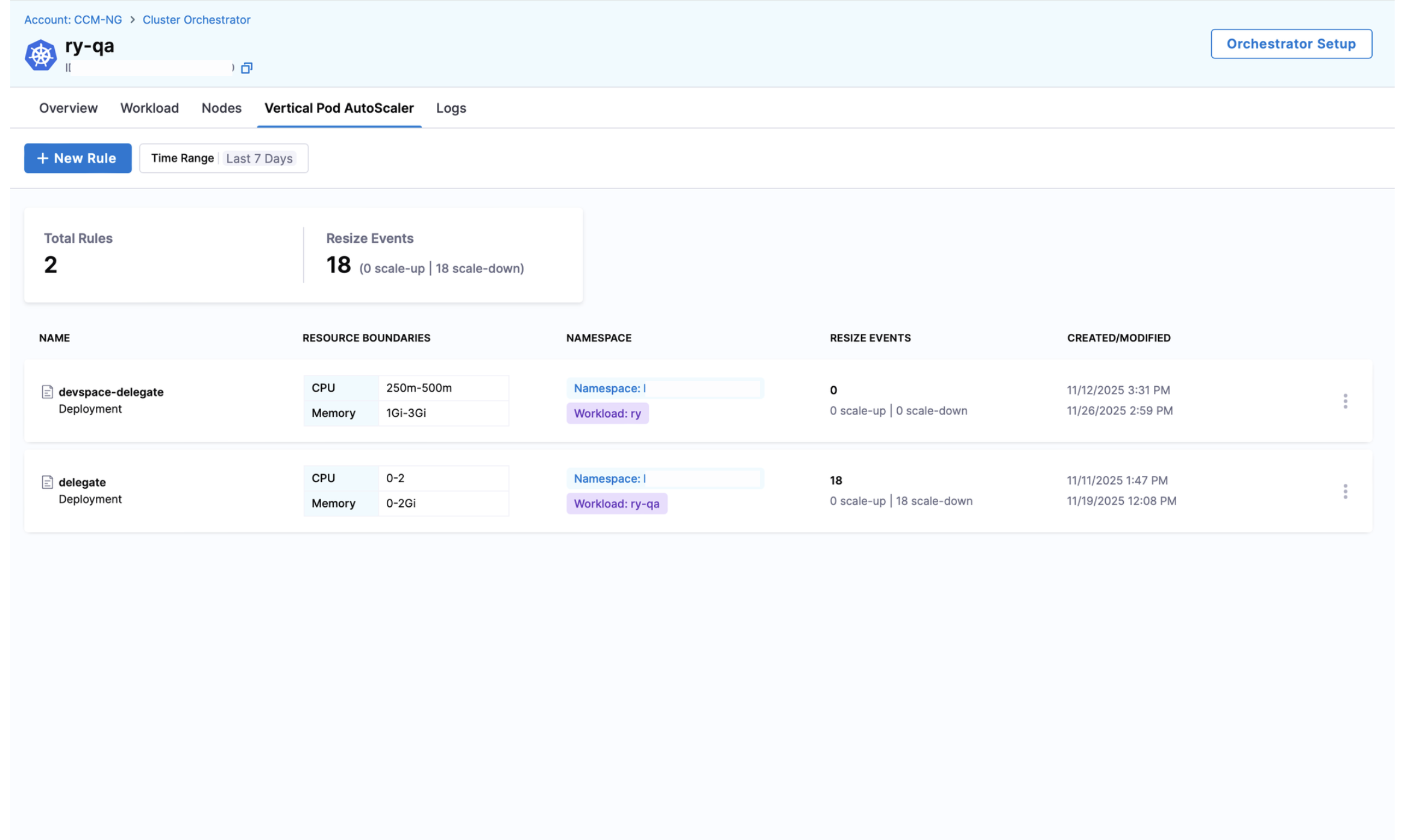 - Resize Events: Total number of pod resize events triggered by VPA rules