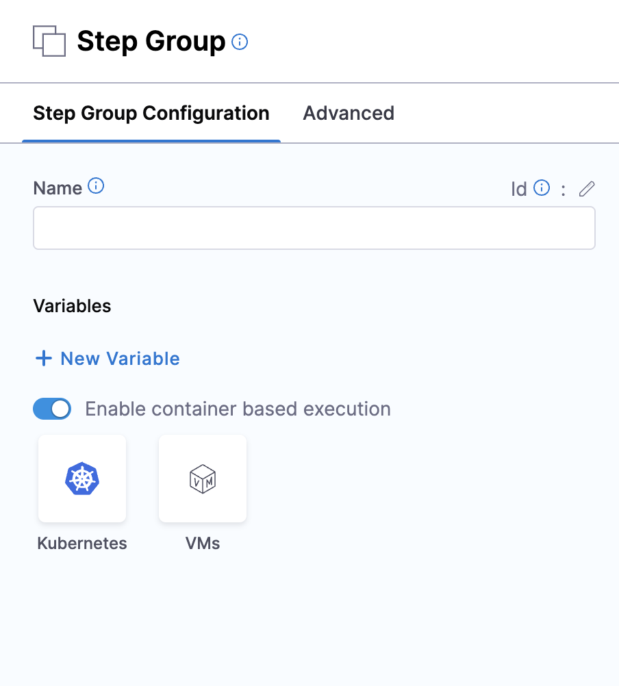 When you select VMs as your infrastructure type, the containerized step group will run on virtual machine infrastructure.
