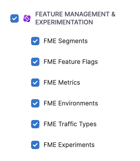 Select Feature Management & Experimentation to enable all FME resources or click the checkbox next to each resource in the Feature Management & Experimentation section.