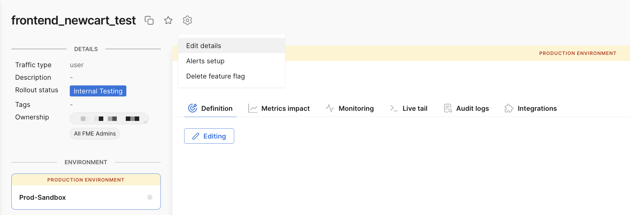 Navigate to the Feature Flags page in Harness FME and select a feature flag.