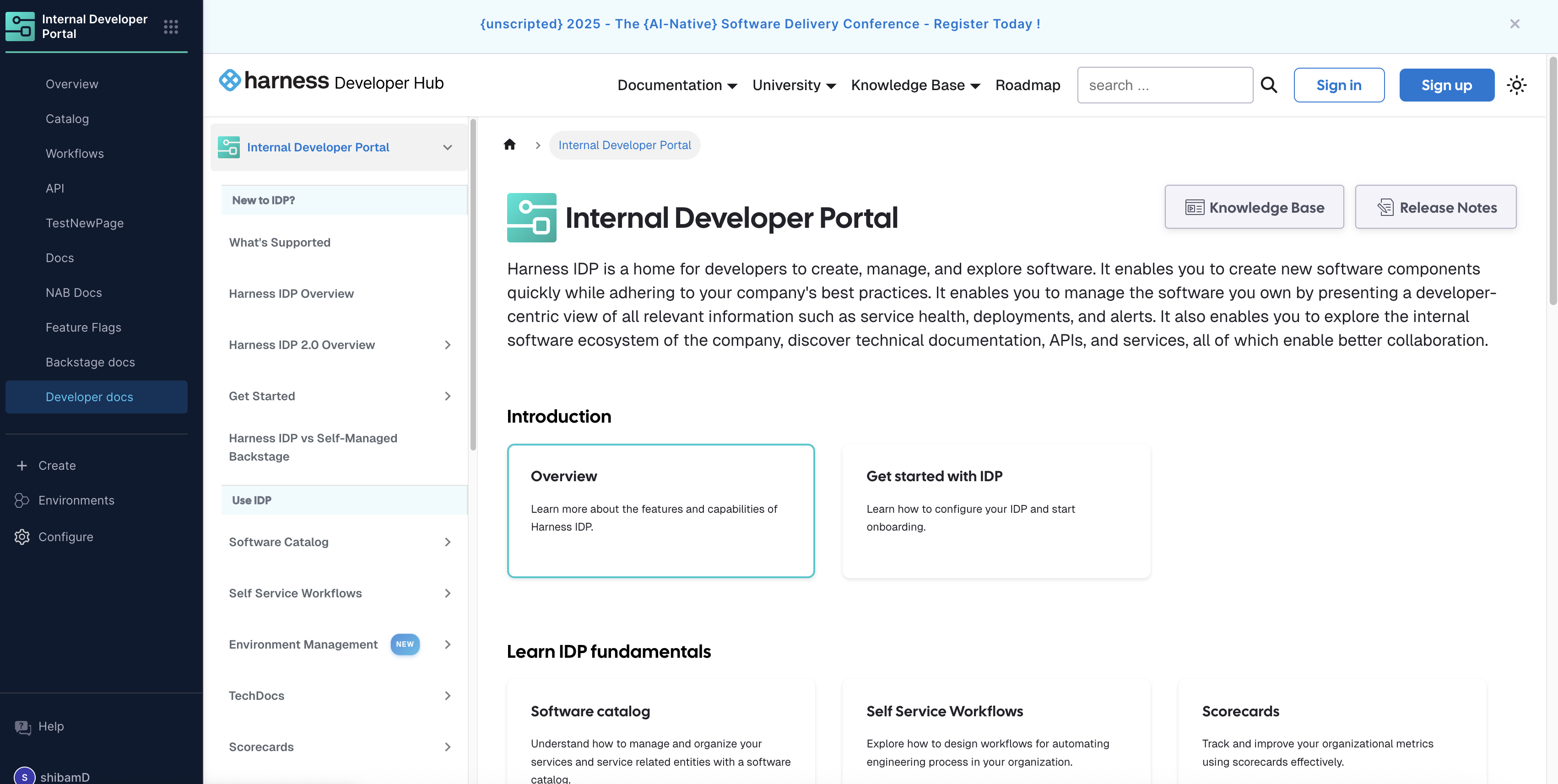 In Harness IDP, you as a platform admin can customize the sidebar navigation to ensure the end-users see what's important for them. This can be used to add new plugins, reorder existing items based on priority, add custom links to different tools for quick access, etc. The Sidenav changes are reflected for everyone using Harness IDP and does not affect any other Harness modules.
