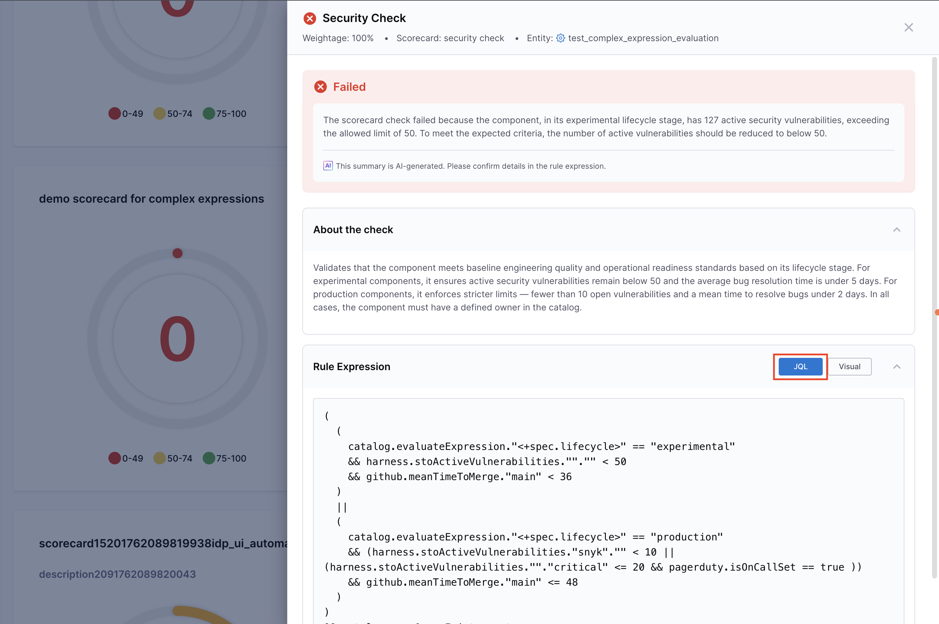 You can manually refresh a component's Scorecard evaluation from the Harness IDP UI, triggering an on-demand evaluation and updating the component's score in real time.