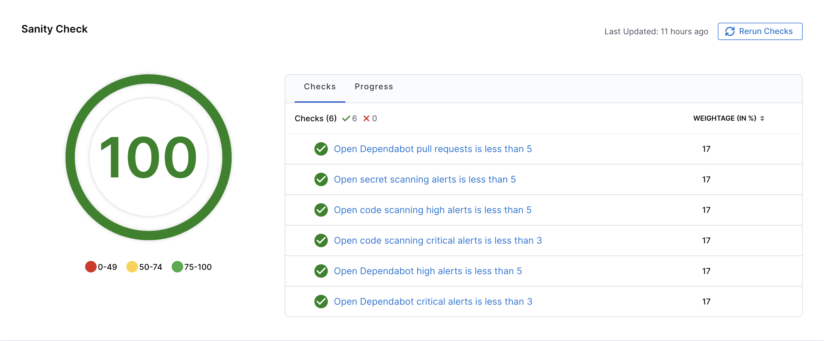 On the Scorecard page, locate the specific Scorecard you want to refresh and click "Rerun Checks".